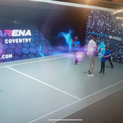 Teams of 3 compete in HADO trying to destroy opponents life markers while avoiding being hit.