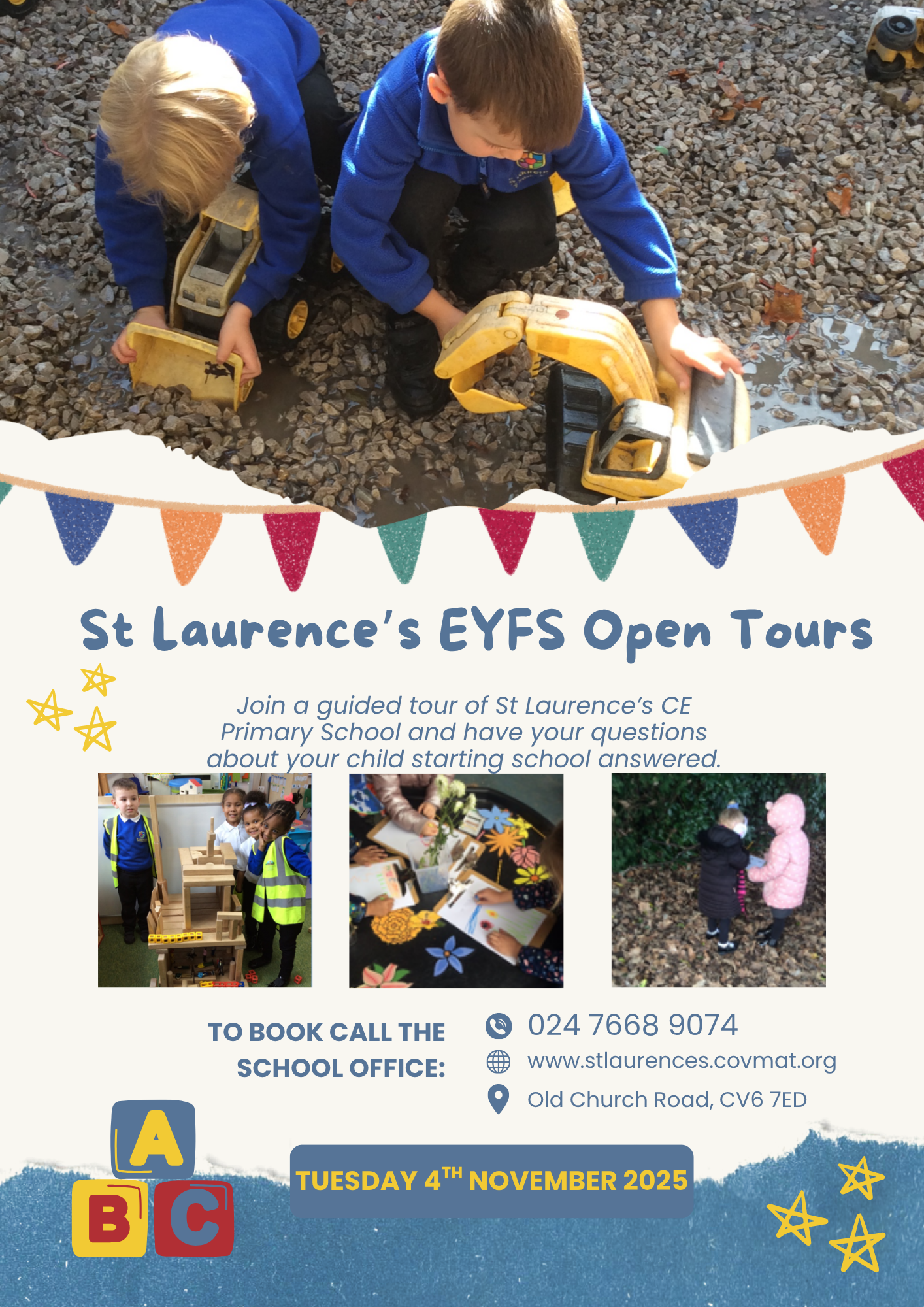 At St Laurence's Primary School we pride ourselves on providing high-quality EYFS education, giving children a secure and reassuring start to their school life. Our curriculum has been developed to offer each child the stepping stones needed to access the wider curriculum as they progress through to year 6.